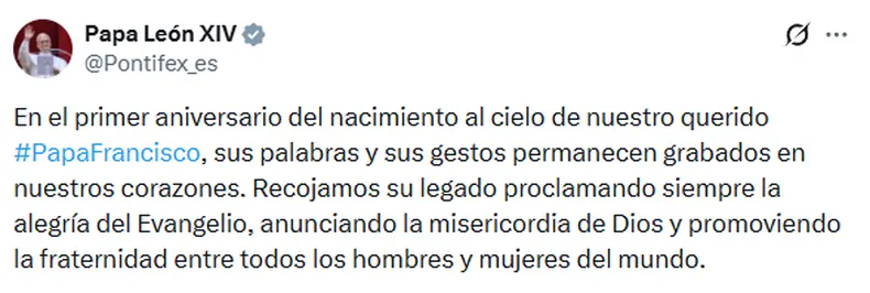 Más tarde se celebrará una misa en su memoria, durante la cual se leerá un mensaje enviado por León XIV, quien se encuentra en una gira oficial por África. La ceremonia podrá seguirse tanto desde la plaza como a través de transmisión en vivo.