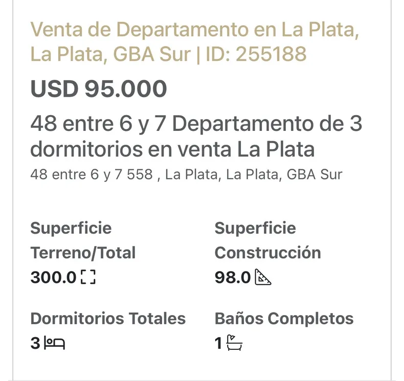La propiedad en venta tiene tres ambientes que ocupan 98 metros cuadrados y está en el cuarto piso del edificio con vista al frente. Se trata de una construcción con 50 años de antigüedad, pero «se destaca por su excelente estado de conservación, sin ningún tipo de rotura ni detalles de humedad», según la publicación de la venta.