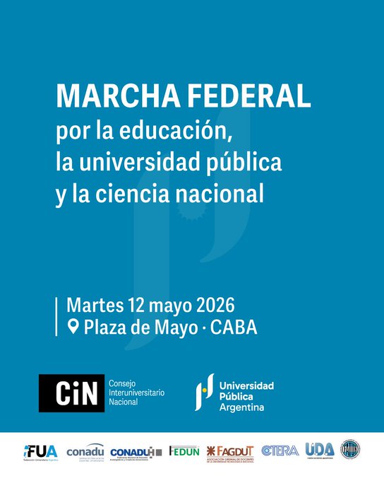 “Marcha federal por el cumplimiento de la Ley de Financiamiento Universitario”, convoca el CIN. La movilización será el 12 de mayo a Plaza de Mayo.