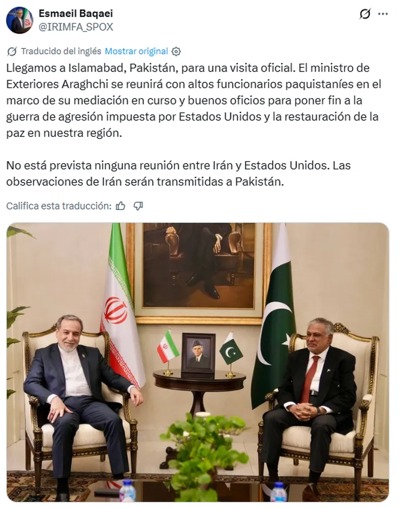 El vocero de Irán, Esmaeil Baqaei, fue claro al descartar reuniones planificadas con la comitiva que enviaron desde Washington para estas gestiones de paz. «No hay planeada ninguna reunión entre Irán y Estados Unidos. Las observaciones de Irán serán transmitidas a Pakistán», sentenció el diplomático a través de sus redes.