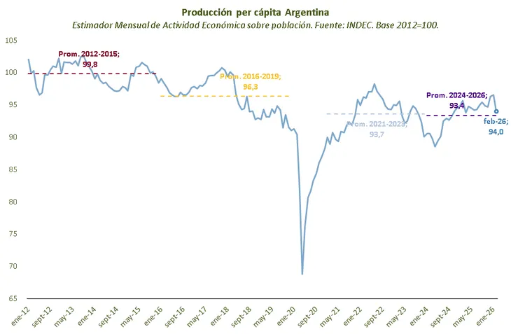 Al hacer foco en la última década y media, para este experto la caída no puede explicarse de la misma manera, ya que Argentina es uno de los países con peor rendimiento macroeconómico en América del Sur. «Si bien Venezuela tuvo el peor desempeño en términos de producción —más allá de lo que ocurra con los activos financieros—, las cifras ubican a la Argentina en un lugar crítico dentro del contexto regional», agregó y cerró: «Si bien existen vaivenes lógicos en la «foto grande» —donde períodos como la segunda mitad de 2024 o el 2022 pudieron ser superiores al 2023 o al cierre de 2025—, en el mediano plazo la tendencia se ha ido agravando».