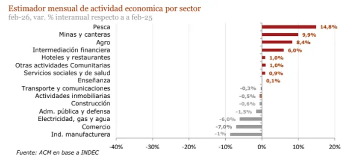Desde ACM resaltaron que en el inicio de 2026 se mantuvo la heterogeneidad sectorial de 2025, con un «mal desempeño de las ramas más vinculadas al mercado interno».
