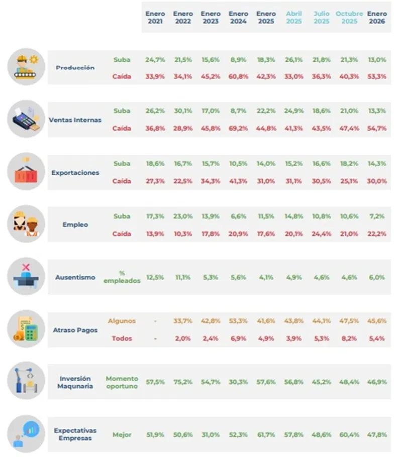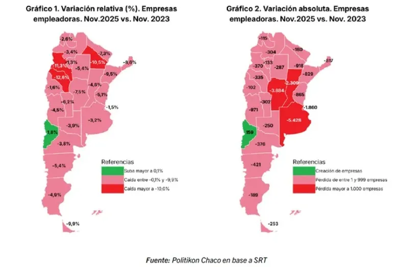 Además de la destrucción de puestos de trabajo, también se redujo la cantidad de empresas industriales. En noviembre de 2025 había 1504 empleadores menos que un año antes y 2578 menos que en diciembre de 2023, lo que confirma el cierre de unidades productivas en distintos sectores.