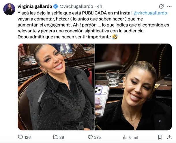 La jornada en el Congreso de la Nación sumó una nueva polémica que rápidamente se trasladó a las redes sociales y tuvo a Virginia Gallardo como protagonista. En medio de una sesión atravesada por la presencia de Manuel Adorni, una imagen suya captada dentro del recinto terminó generando una fuerte repercusión.