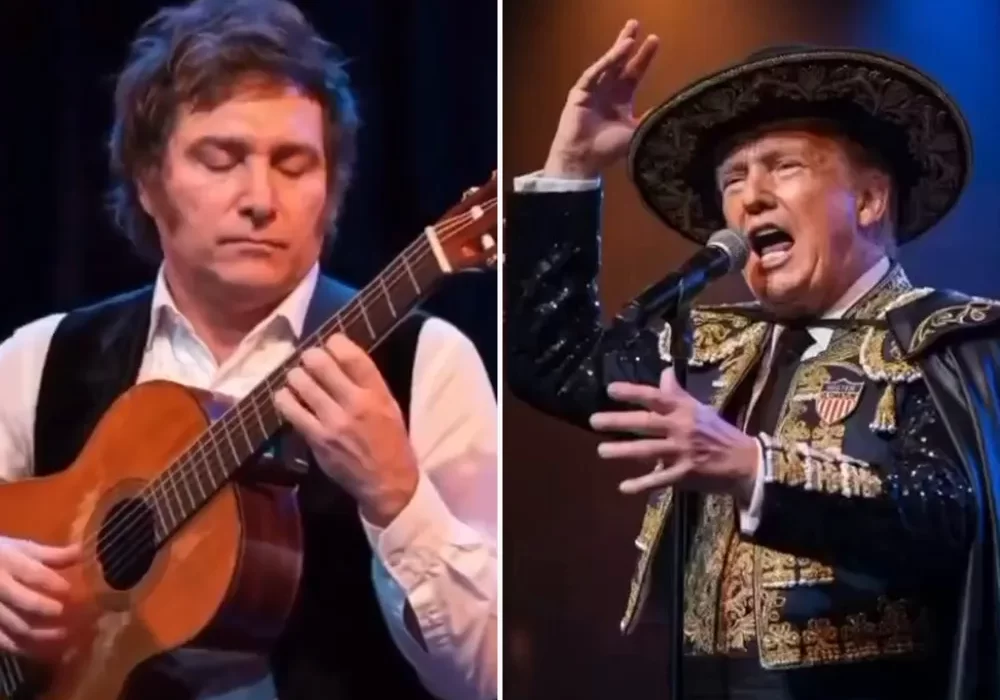 El presidente Javier Milei compartió en sus redes sociales un video hecho con IA en donde él toca la guitarra mientras Donald Trump canta en un momento en el que es cuestionado por su excesivo uso de redes sociales.